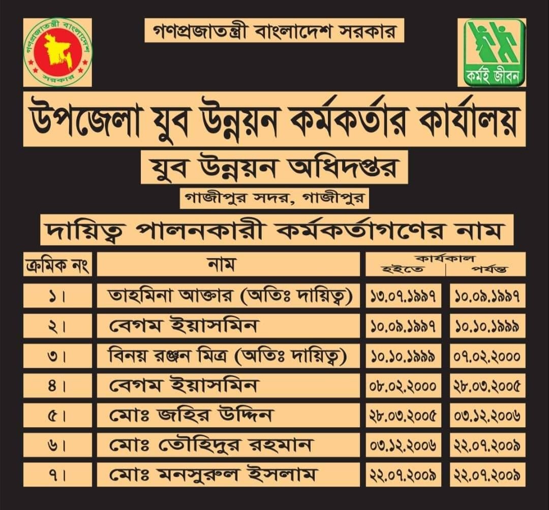 উপজেলা যুব উন্নয়ন কর্মকর্তার কার্যালয়, গাজীপুর সদর।